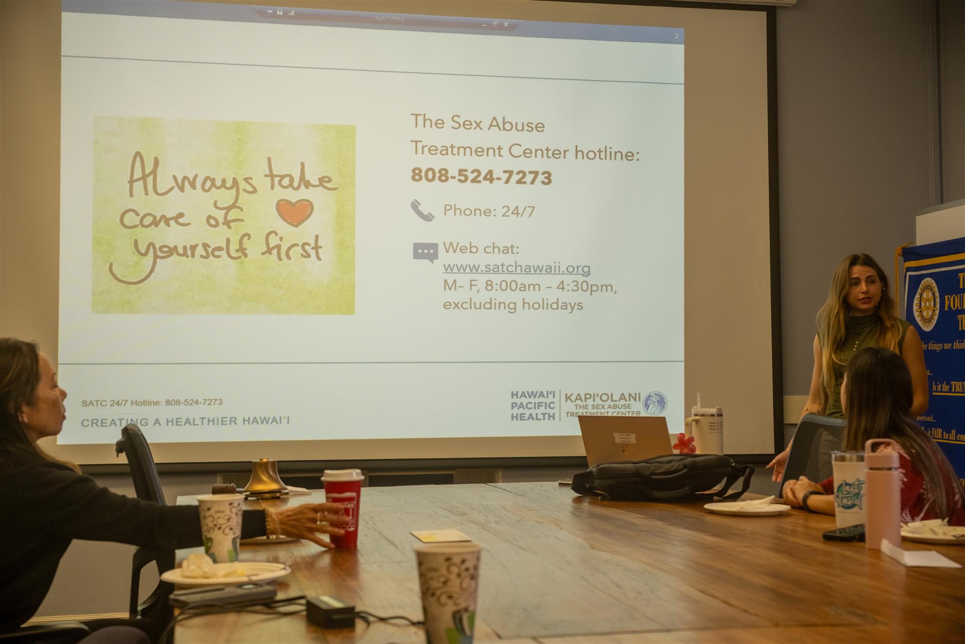 Mahalo to Emma Enloe, Crisis Outreach Coordinator with the Sex Abuse Treatment Center, for speaking with the Rotary Club of Kahala Sunrise.